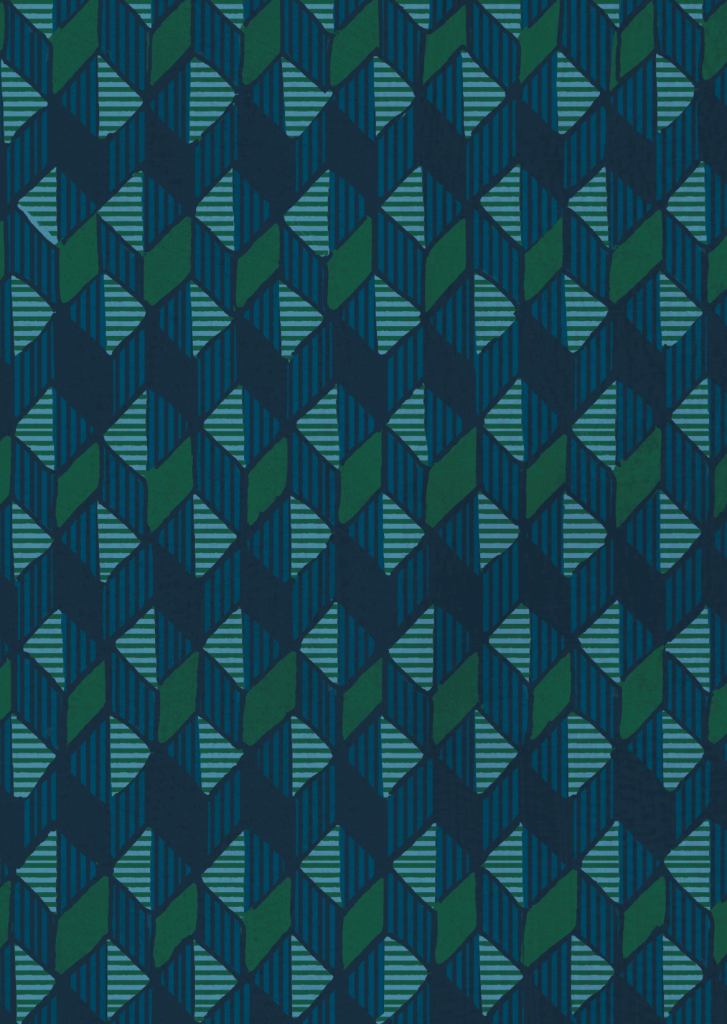 Geometric collection created in-house for Designers Guild, hand-crafted from linocuts and collaged compositions.